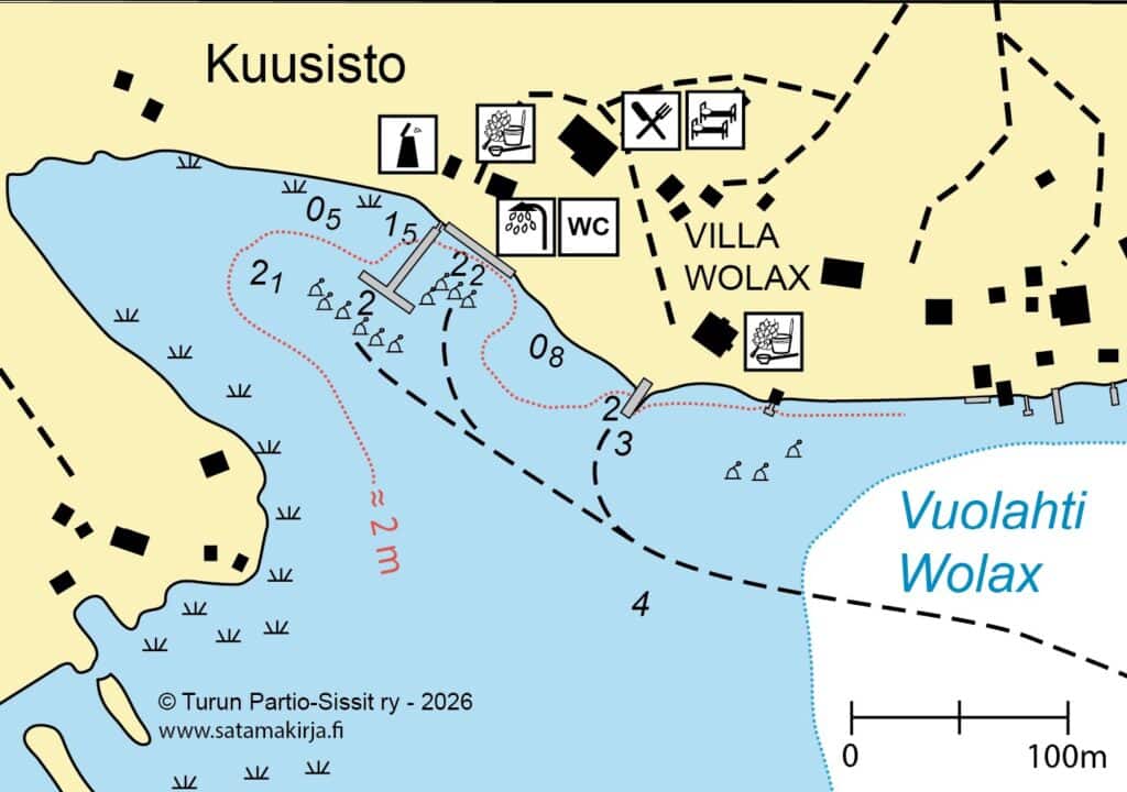Our harbour is sheltered from all winds, and boaters have access to electricity, water, showers, and toilets. The sauna and outdoor hot tub can be reserved for private use—please contact our sales service for more information.